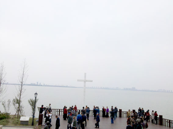 竖立在独墅湖水中的十字架,高6.6米,宽3.15米,夜晚发光,与水中倒影相映生辉,构成一幅绝美的图画。