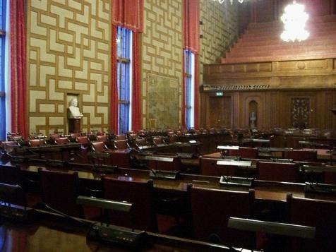 议会大厅,各党派在此辩论某项政策,瑞典7个政党都有自己的专座,左派坐左边;右派坐右边。