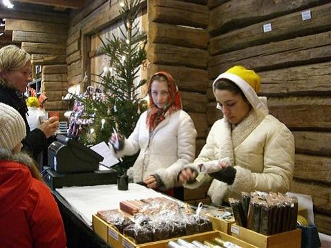 北欧人民热爱乡村文化,保留传统劳作。圣诞前各闹市区有许多红色小木屋(商业亭)围成一个传统手工制作自由市场。人们穿着古典乡村服饰,把家传的食品、玩具、工艺、花卉、酒饮料等放在这里叫卖。铁匠和玻璃匠,当场开火炉制作。